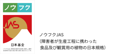 農福連携の商品のうち、障害者が生産工程に携わったことについて第三者の認証を受けた者には、「ノウフクJAS」のマークを表示することができます。農福連携の理念に共感し、ノウフクJAS商品を取り扱う企業が増えています。
