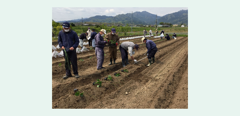 *福祉事業所の農場で、利用者と一緒に農作業をする。